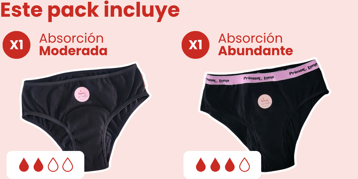 Bombacha menstrual niña - PACK X 2 UNIDADES (1 ABSORCIÓN ABUNDANTE + 1 ABSORCIÓN MODERADA) ♡